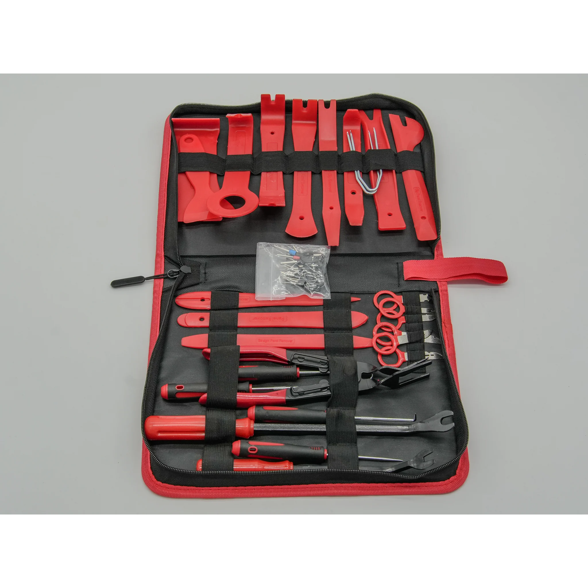 Želite li ukloniti auto radio, ukloniti obloge vrata ili otpustiti plastične kopče – s 38-dijelnim setom alata za uklanjanje tvrtke Brand7 imate savršenu opremu za sve radove na unutrašnjosti vašeg vozila. Ovaj set kombinira sve što vam je potrebno za uklanjanje obloga, kopči, panela i brtvi bez oštećenja.
