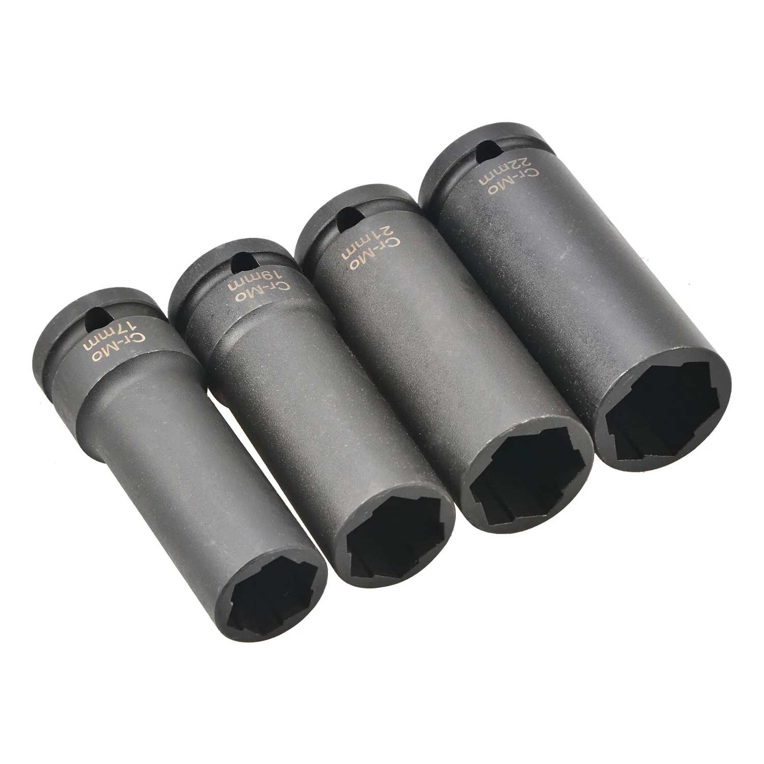 Set uključuje najčešće veličine (17, 19, 21, 22 mm), što ga čini idealnim za automobile, SUV-ove i laka komercijalna vozila. Dolazi u čvrstoj plastičnoj kutiji – savršenoj za radionice, službe za pomoć na cesti ili privatnu upotrebu u garaži.