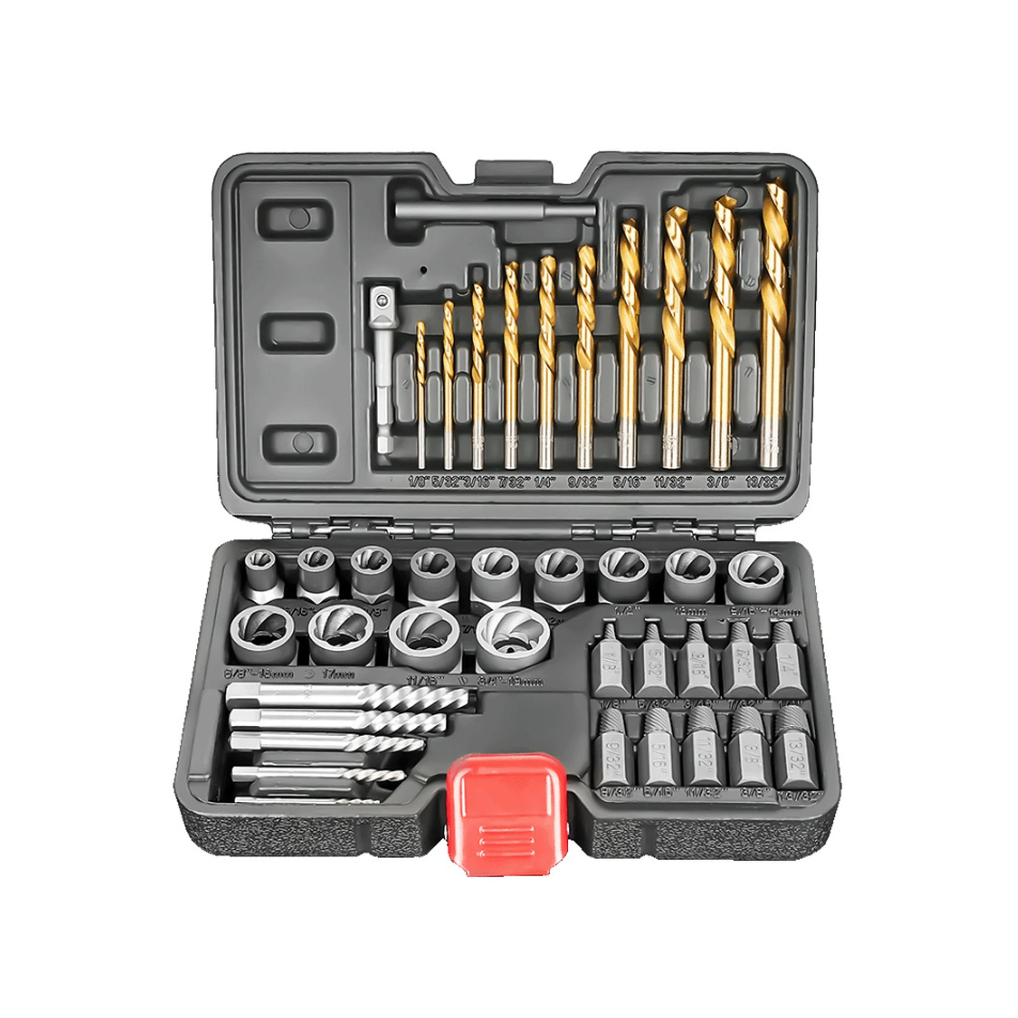 S ovim setom od 40 dijelova za vađenje vijaka, uključujući svrdla i nastavke od titana, možete brzo i pouzdano ukloniti oštećene, istrošene, zahrđale ili zaglavljene vijke, matice i matice . Ovaj set je nezamjenjiv alat za popravke automobila, održavanje motocikala, strojarstvo, obradu metala, DIY projekte i još mnogo toga.