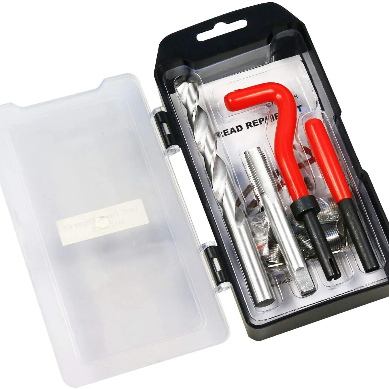 Set sadrži 25 žičanih navojnih umetaka , precizno usklađeno spiralno svrdlo, odgovarajući navojni alat, alat za montažu i lomač trna – sve sigurno i pregledno pohranjeno u praktičnoj plastičnoj kutiji s poklopcem na šarke.
