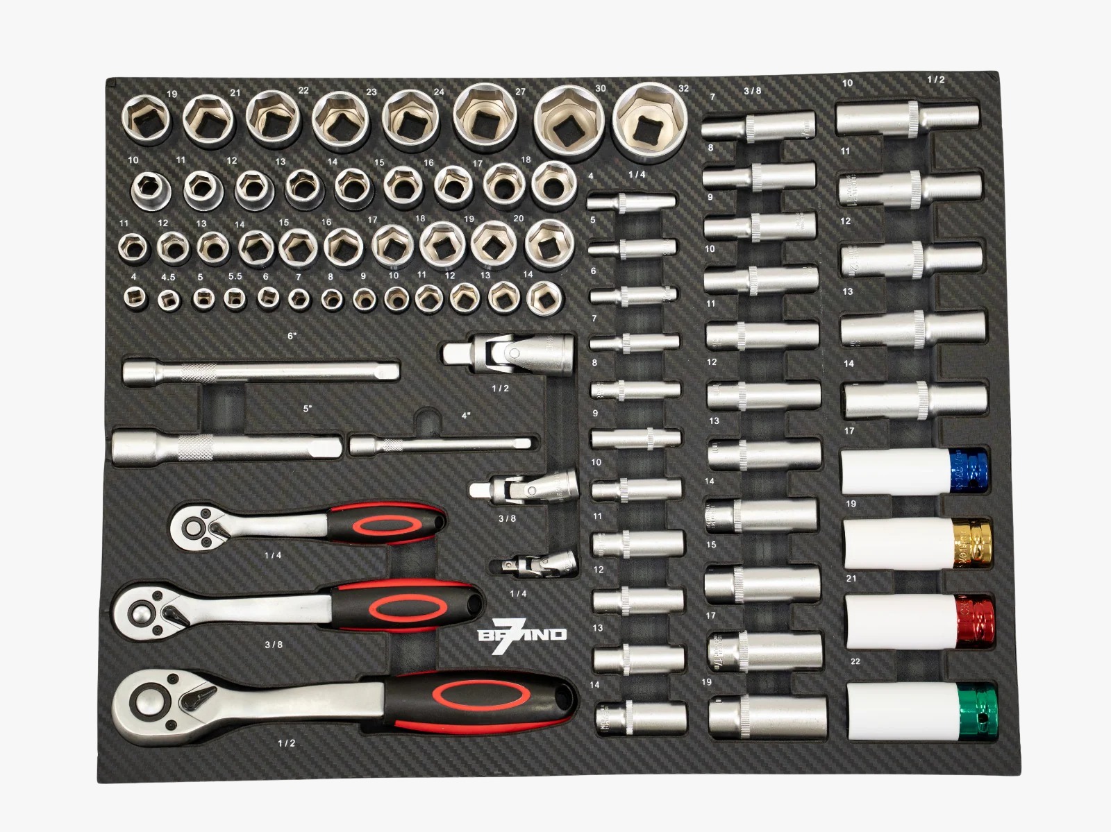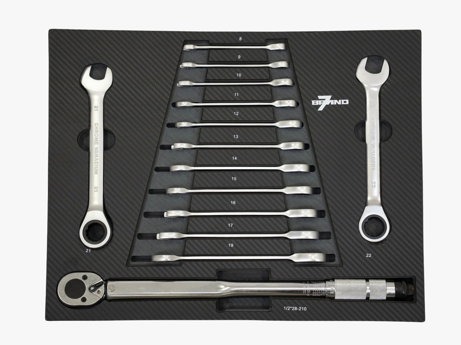 - Ladica 3: Ključ s čegrtaljkom – 14 dijelova + 1 moment ključ