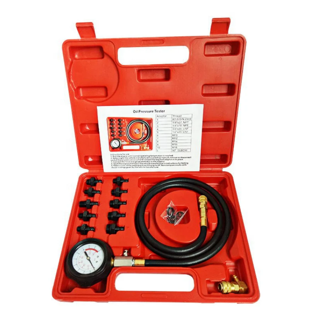 Mjerač tlaka ulja BRAND7 vaš je pouzdan partner za precizna mjerenja tlaka motornog ulja na benzinskim i dizelskim motorima. Visokokvalitetni materijali, sveobuhvatan set adaptera i jednostavno rukovanje čine ovaj mjerač tlaka ulja idealnim izborom za radionice i ozbiljne ljubitelje automobila.