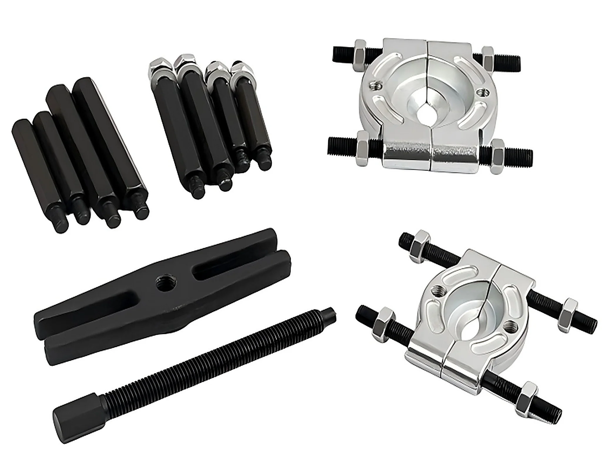 Ovaj set od 12 alata za skidanje ležajeva i zamašnjaka s reznim oštricama nezamjenjiv je alat u radionici za profesionalne mehaničare i ambiciozne hobiste. Omogućuje vam brzo, precizno i bez oštećenja komponenti uklanjanje kugličnih ležajeva , zupčanika , nazubljenih kotača , čahura ili zamašnjaka – bilo u automobilskom sektoru , na motociklima , brodskim motorima ili u popravcima poljoprivrednih strojeva .