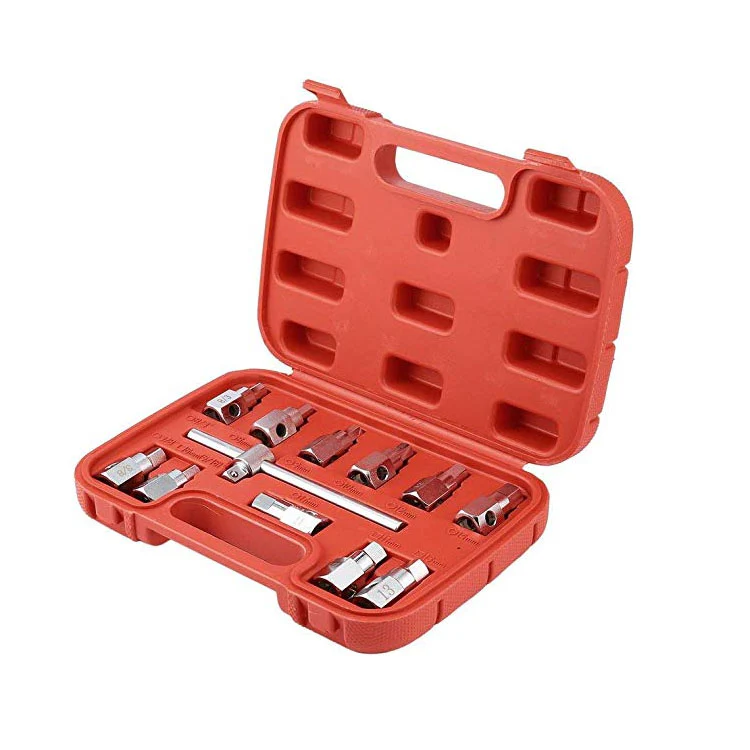 Želite li brzo, učinkovito i bez oštećenja vijaka mijenjati ulje? Tada je set nasadnih ključeva Brand7 YZ-6046 idealan dodatak vašoj radionici. Ovaj 13-dijelni specijalni alat posebno je dizajniran za odvrtanje čepova za ispuštanje ulja – bilo na motoru, mjenjaču, diferencijalu ili osovini.