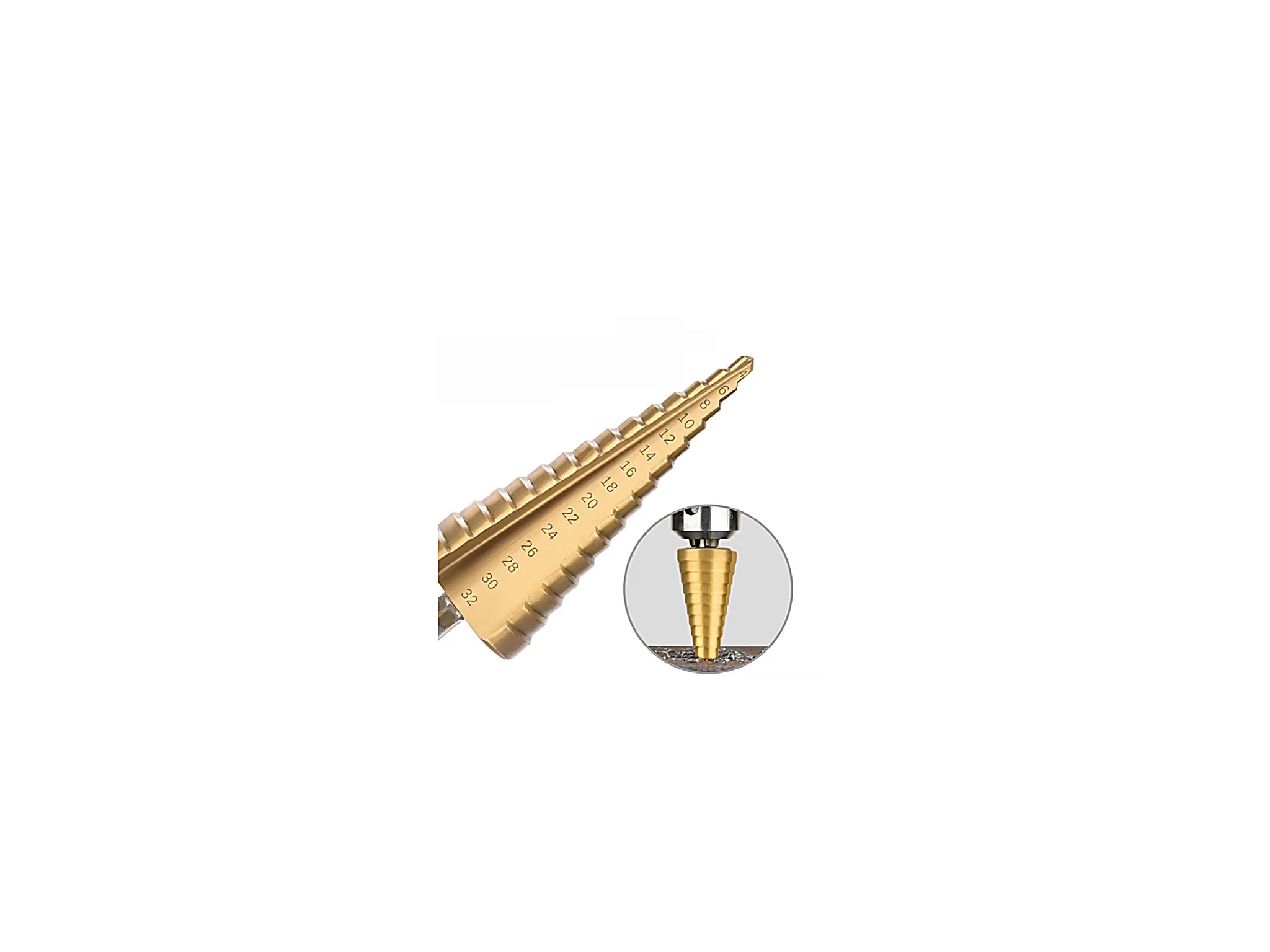 Ovaj set od 3 stupnjevitih svrdla izrađen od visokokvalitetnog HSS čelika s titanskim premazom idealan je izbor za precizno bušenje u metalu, nehrđajućem čeliku, aluminiju, bakru, mesingu, plastici i drvu .