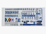 - Pladanj 1: Nasadni ključevi 1/4″ i 1/2″: 4–32 mm (kratki i duboki), nasadni ključevi: Torx, Allen, PH, PZ, 3 račve + produžeci, adapteri i zglobovi