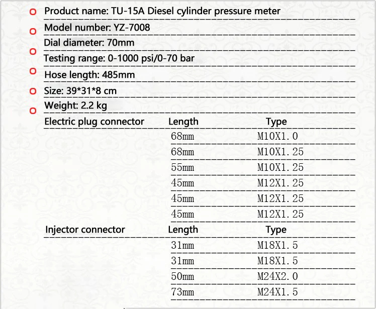 | Vrsta proizvoda | Uređaj za mjerenje tlaka goriva TU-114 |